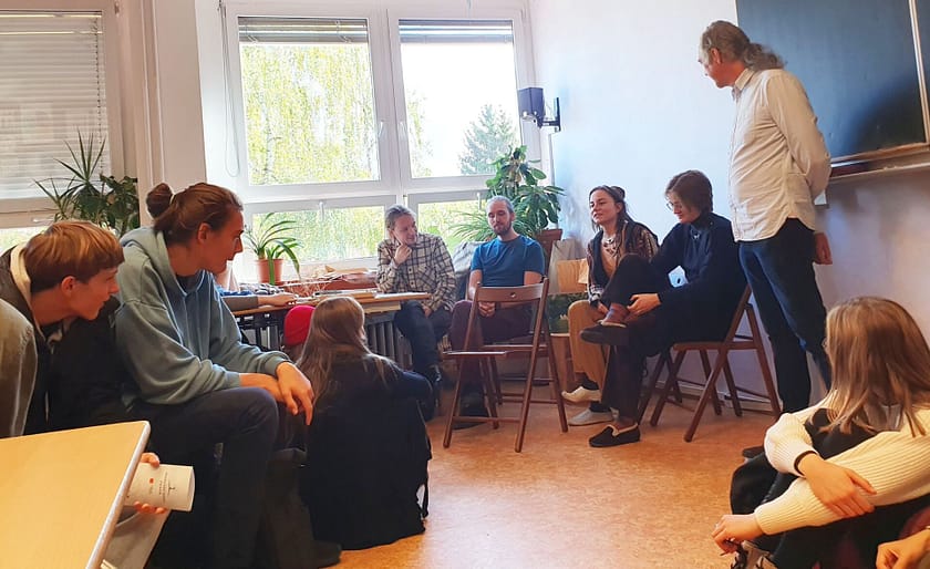 Je pondělí ráno a ve 3. ročníku waldorfského lycea v Praze mají „epochu“ dějepisu. Epocha je klasickým formátem waldorfské školy všech stupňů. Jde o hlavní vyučovací blok daného dne – na lyceu od osmi do deseti ráno – ve kterém se třída po dobu dvou tří týdnů zabývá jednou výukovou oblastí. Může to být poetika, historické období, výseč matematiky, fyziky, chemie. Dějiny umění…